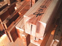 鋸で切り、鉋で削り、木槌で叩く。全て職人による手作業です。部品のひとつひとつを親方が確認しながら作業は進みます。 |